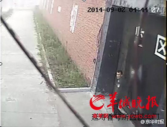 三犯逃出看守所时的视频监控截图