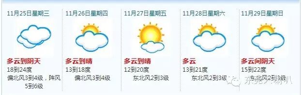 ▲未来五天的东莞天气,据东莞市气象局,预计25-26日受强冷空气主体影响,我市多云天气为主,北风加大,气温大幅下降,天气转冷,27日早晨最低气温将降到12度左右;展望28-29日多云为主,气温小幅回升,早晚仍较寒凉。受冷空气影响,早晚天气寒凉。