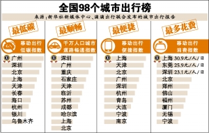 信息时报讯(记者 史倩云)昨日,新华社新媒体中心联合滴滴出行发布了一份城市出行报告。根据全国一二三线共98个城市的出行情况,该报告总结指出:在全国11个千万人口城市中,广州和深圳的道路最为畅通,同时,广州的移动出行便捷指数在全国排名第四,仅次于上海、天津、北京。