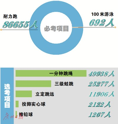 广州日报讯 (全媒体记者刘晓星)2018年广州中考于昨日拉开了序幕。首先开始的是4月8日~28日的中考体育考试。在今年的必考项目中,选择耐力跑的考生86655人;选择100米游泳的考生只有692人。为了让体育考试整体进程更加紧凑,今年游泳考试提前至4月17日至19日,以便考生合理分配中考备考时间。