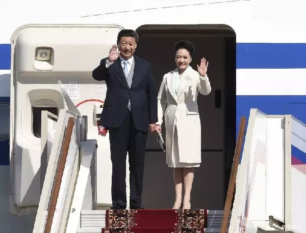 5月8日,国家主席习近平抵达俄罗斯首都莫斯科,开始访问俄罗斯,并出席即将举行的俄罗斯纪念卫国战争胜利70周年庆典。这是习近平和夫人彭丽媛步出舱门。新华社记者张铎摄