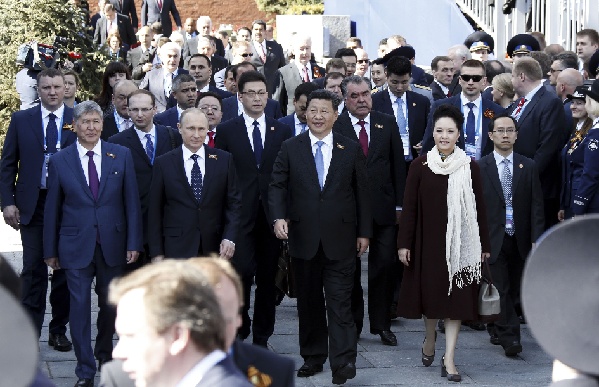 9日一早,普京在克里姆林宫迎候了约20个国家和地区及国际组织的领导人,习主席和夫人彭丽媛是最后抵达的贵宾。外交礼仪中,显而易见,“压轴出场”的客人当然是最重要的客人啦。