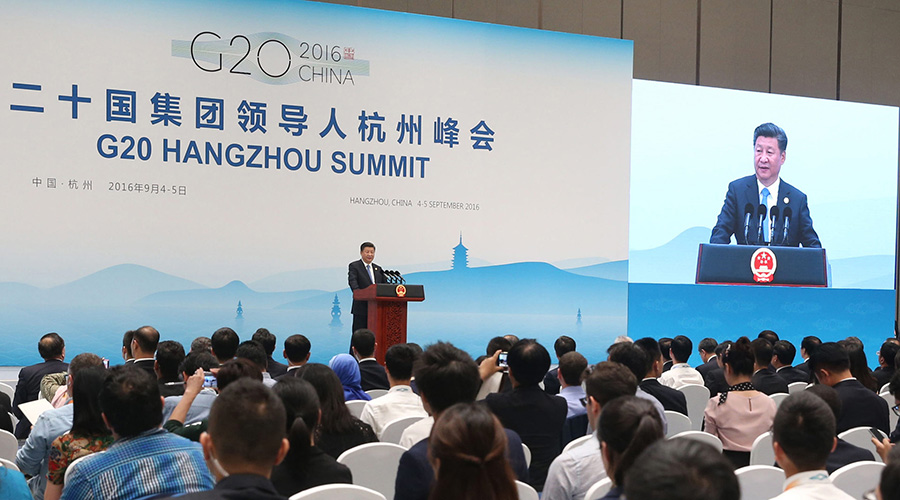 9月5日,二十国集团领导人第十一次峰会闭幕后,国家主席习近平在杭州国际博览中心会见中外记者。新华社记者姚大伟摄