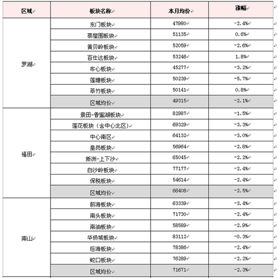 从全市各区的指数变化情况来看,除房价较低的盐田区微涨之外,其余各区均出现了2%-4%的回调。特别是前期涨幅过猛的区域调整幅度非常明显,例如宝安、龙华,价格降幅均超过了3%,而且4月份至今成交量较3月大幅下滑超6成。同时,罗湖二手均价跌破五万,为49315元/㎡,环比下跌2.1%,房价偏高的南山、福田回调幅度也超过了2%。