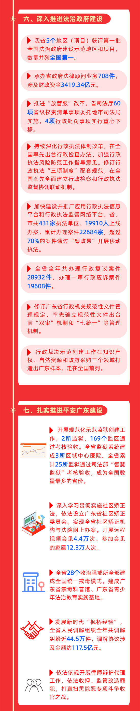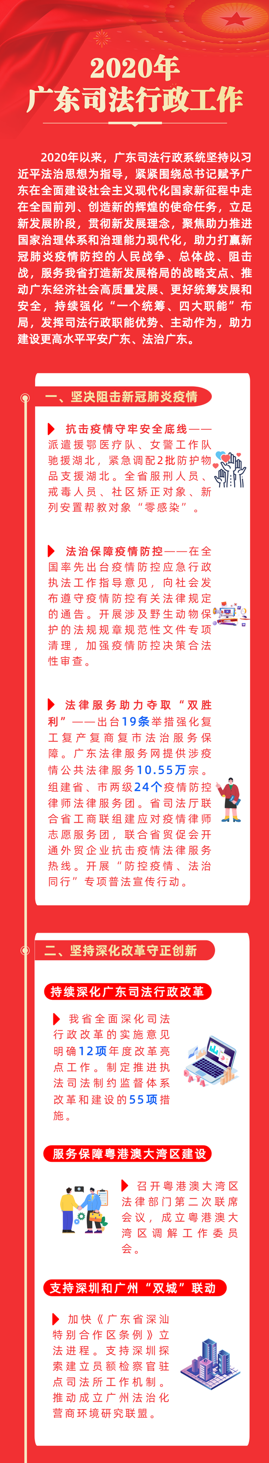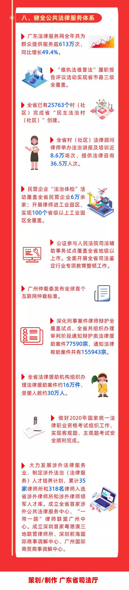 广东服刑人员、戒毒人员、社区矫正对象、新列安置帮教对象“零感染”;全国首家民法公园正式开园;5个地区(项目)获评第一批全国法治政府建设示范地区和项目,数量并列全国第一……2020年,广东司法行政系统发挥职能优势、主动作为,交出一份“亮眼”成绩单。一图带您读懂——