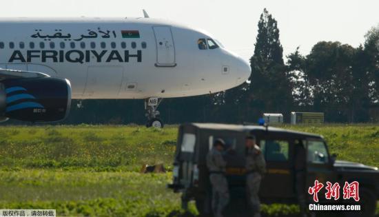 客机于当地时间23日11时30分降落马耳他后,多辆军车随即将飞机包围,机场其他航班均延迟起飞或取消。