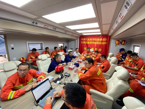 集结后,全体消防指战员严格按照划分片区停车驻扎,编组人员,检查装备,整装待命;先后成立28个党组织全面动员,全员进入战备状态,随时做好准备投入防汛救灾战斗;同时,全体指战员严格按照防疫有关要求,做好营地消杀、个人健康防护。