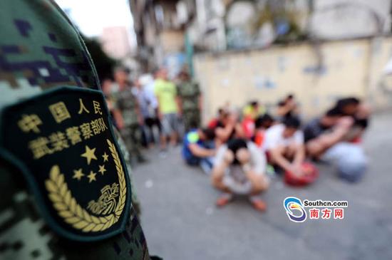 图为抓捕现场据了解,5月中旬,武警广东边防六支队侦查人员接线报称,近期将有人组织多名东南亚籍人员在深圳红树林海域偷渡至香港务工,经过近半个月的跟踪侦查,侦查人员决定于5月29日进行收网行动。当日下午14时30分,这个支队侦查人员兵分三路,一路乔装来到罗湖区某街道涉嫌偷渡人员居住的宾馆附近设伏,另外两路人马前往南山区白石洲伺机抓捕组织运送者。晚上21点许,在白石洲盯梢的侦查人员发现,涉嫌组织偷渡团伙中的一名蛇头庄某离开住所前往盐田区与在大梅沙的另一蛇头进行了碰头,此时侦查人员判断抓捕时机并不成熟,为进一步扩大战果,他们带着疑点循序调查,继续跟踪盯梢庄某的行动,另外两路侦查人员则按兵不动,继续潜伏盯梢,密切关注各方情况,收网行动延后。