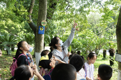随后,讲解员带着孩子们来到了户外的芳香园。在这个种植逾300种中药材的植物园里,孩子们在老师的带领下认识了常见草药的种类与功效,接触到各类药用植物,更深入地了解了岭南凉茶的特色,引发孩子们对制药技术的思考。