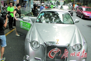 记者了解到,昨日该巴士公司还吸引了约10多辆豪车,包括奥迪、奔驰、路虎等,从华师大后门免费接送下班市民,沿着原来开辟至岑村红花岗的巴士线路开行。记者现场看到,这些豪车中最为高档的为一款劳斯莱斯幻影系列车型,售价高达800万,一些下班等候返家的市民,被邀请免费乘坐该车回家,现场有该巴士公司人员组织引导。
