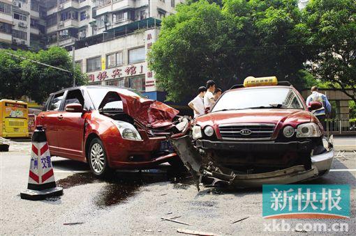 公交急变道致的士连撞护栏小车 公交车被认定负全责