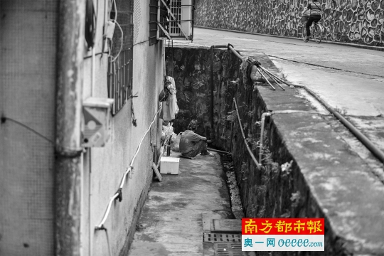 排水道上方有两个巨大的空调排风机,李姐娇以前没见过空调,即使是排风机吹出的是热风,她也十分兴奋地到处给熟人介绍:“原来城里面到处有免费的空调吹。”不少人认为她是疯婆子,也没人给她解释。排水道堆砌的石墙有几个洞,那是老鼠的出入通道,每天入夜,老鼠就贴着耳朵叽叽喳喳,习惯了,李姐娇再也不怕老鼠,“老鼠不坏,最坏的是蚊子。”她从来没有用过蚊帐,摸着全身被咬的疙瘩也无可奈何。