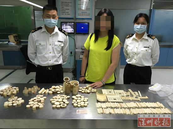 港籍女子快递包藏7公斤象牙制品入境被截