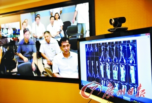 省人民医院远程会诊室,专家和千里之外的喀什第一人民医院医生在对一个病例进行远程会诊。 记者乔军伟摄