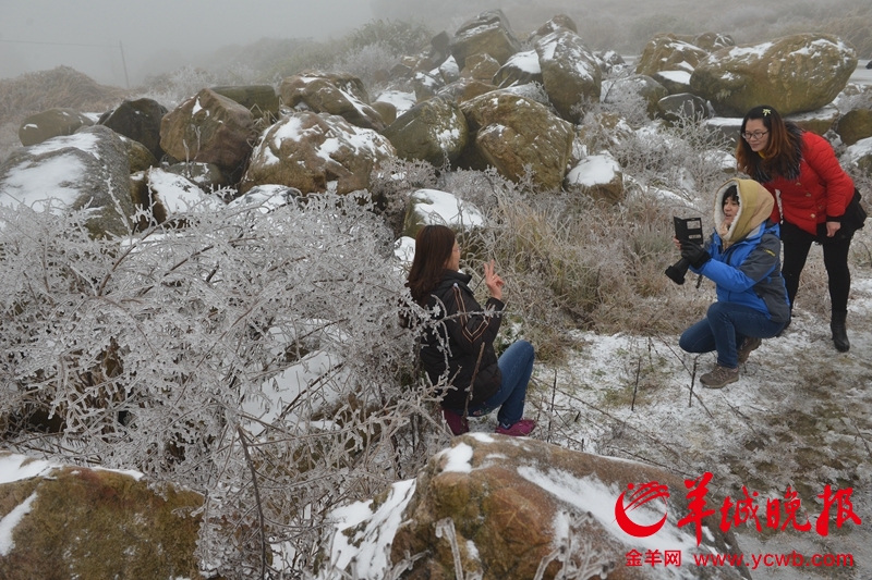 寒潮来袭粤北地区降雪 很多人特意前来看雪拍照