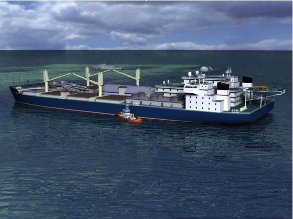 此外,中船第九设计研究院还展示了岛礁施工平台技术储备项目。 该项目是研究通过现有民用船舶进行改装,以低成本的方式建成能够投入到南海人工岛礁施工建设中的大型浮式生产平台的可行性方案。