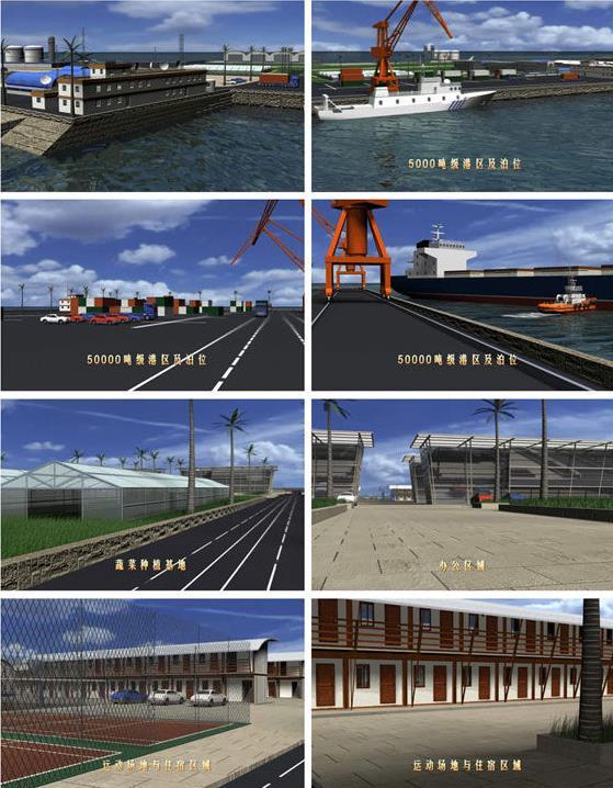 此项目通过三维可视化表现的技术,将岛礁设计方案进行详细的动态三维表达,重点表现人工岛上重点功能区域的布局与日常运维情况。