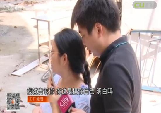 记者一行到厂内采访时,遭到厂长和员工的阻扰。唐女士接到厂方负责人电话,对方称“如果你不打算走的话呢,我就告诉你,你这是搞你自己。”(来自:深圳第一现场)