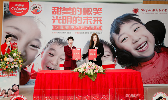 2021年3月9日,陶行知教育基金会携手高露洁,在广州东泰学校举行了“甜美的微笑,光明的未来——认真养成护牙好习惯”公益项目签约仪式。高露洁此次提供了价值200万元的口腔护理产品和完善的口腔健康教育。高露洁希望通过配套物资和实地探访,切实为孩子们带来口腔健康,从“齿”开始,让孩子的脸上始终展露健康自信的笑容。