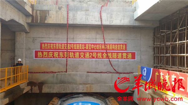 贯通仪式现场 2号线隧道和车辆 珊美站站台效果图羊城晚报讯 记者余宝珠报道:东莞距离地铁梦越来越近了。12月9日,东莞首条地铁线路2号线全线贯通仪式在珊美工地举行。继隧道贯通后,后续将实现轨道通,电通等重要建设,力争2015年实现通车。