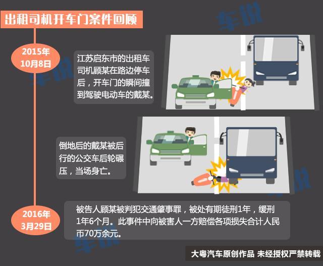 【车说】近期,一则“开车门撞人”事件再次引起热议。3月29日,江苏南通启东“出租司机开车门致人死案”一审判决,肇事司机被判有期徒刑1年,缓刑1年6个月,死者亲属获赔70万。 (来自:腾讯专稿)