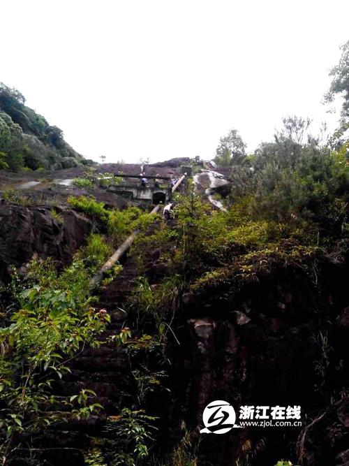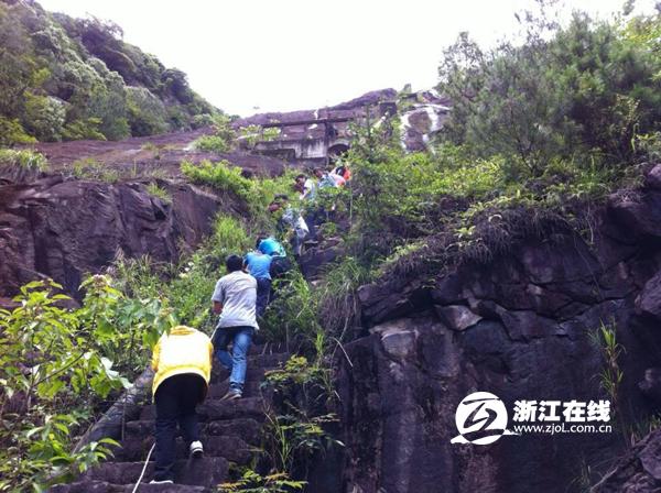消防官兵和玉壶专职队赶到现场后看到,11名孩子站在坡度大约70度,高近50米的悬崖上进退两难。