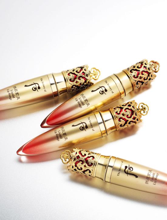 红粉靓梳妆,但是面对高温炙烤,佳人们难免有脱妆的烦恼,想要留住靓丽妆容。今夏,Whoo后拱辰享美奢冠鎏金唇釉闪亮问世,成为天生丽质的都市皇后们的新宠。外形犹如皇后权杖,设计灵感来源于新罗王冠,彰显极致优雅华丽。尾部采用透明材质,让皇后们一看便知其中斑斓璀璨,随时随地随身,守护佳人整日绝美容颜。