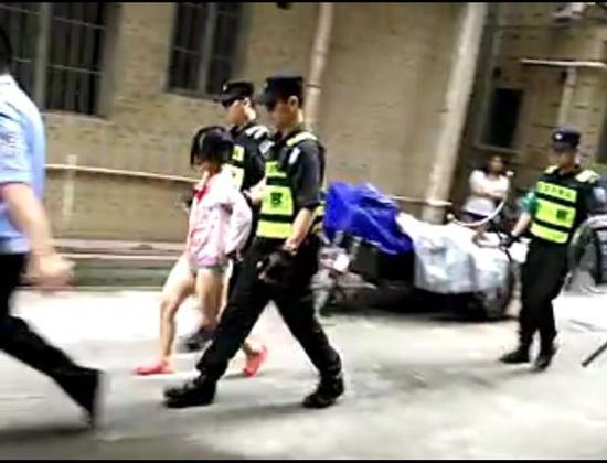 (该名女子被警方带走调查 市民视频截图)记者赶到现场时,事发居民楼已经被警方封锁,而在深圳市龙华新区观澜桂花新村 149 栋的巷子里,还有不少围观的街坊在议论。据一位女士介绍,上午 10 点多,她们听到了楼下有很多警车的声音,随后便有人说 159 栋的四楼发生命案了。