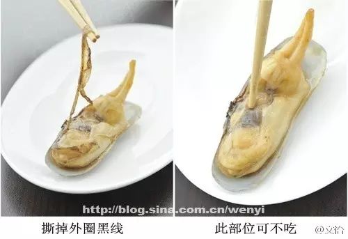 1)蛏子外圈的黑线。2)蛏子肉内黑色的部位。