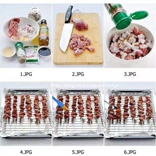 **如果能买到钢制的肉签,比竹签烤肉串要好很多。因为钢被加热后,温度高,肉块能收到内外的两个方向的热量,还可以缩短烤制的时间,口感会更嫩。如果买不到钢的,用竹签也可以,但最好提前能用清水洗净后,浸泡30分钟后再用,避免被烤糊。