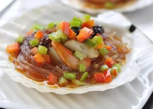 原料: 扇贝4只,红椒碎各2汤匙,香葱碎1汤匙,蒜末2汤匙,柠檬汁几滴,粉丝1把