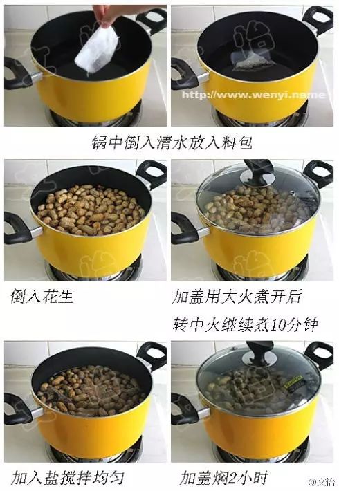 3)锅中倒入比花生多一倍的清水,放入料包,倒入花生,盖上盖子,用大火煮开后转成中火,继续煮10分钟后关火。