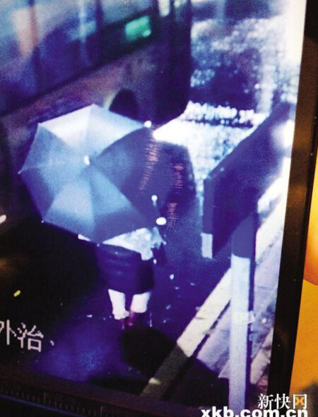 广州警方监控录像显示前天清晨6:40黄丽贞老人打着一把雨伞,头上包着塑料袋在德坭立交桥底经过