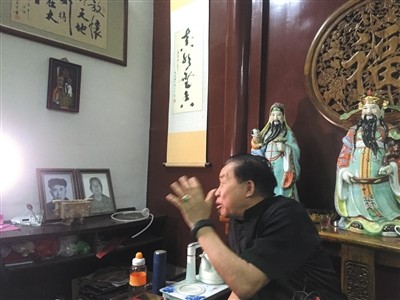 5月7日,朱天才正在院子里接受六名记者采访。一旁的工作人员怒了,“你们不要问大师一些小儿科的问题!”