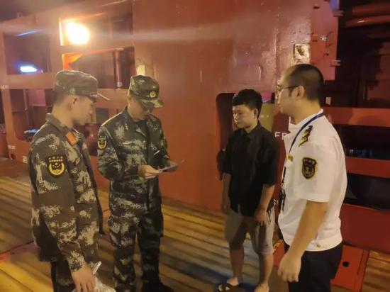 当晚10点42分,惠州海事局船舶交管中心接到“鑫田7号”的报警后,立即派出海事执法人员赶往5号锚地。由于大亚湾辖区内锚泊船舶较多,执法人员一边使用AIS设备搜寻,一边使用甚高频无线电话连续呼叫,确保与“鑫田7号”轮保持联系以确定船位,并与大亚湾区应急办、边防派出所等部门保持及时沟通。