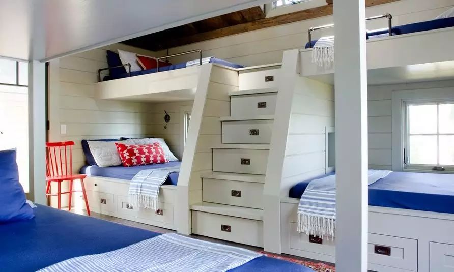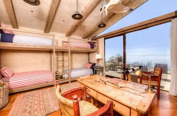 具有蹒跚学步特性的床铺一般都是梯子而不是楼梯。这也有一个内置的存储。以原木为基础的乡村风格在充分利用自然之余还不忘了炫耀它的小木梯。一些房子设计是坐落在海滩之上,看起来整个设计更有格调。