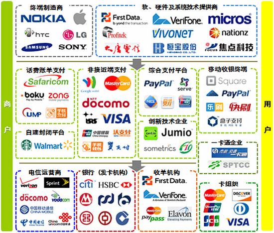 较为商业化的前景是基于角色的企业定位开始出现差异化发展。由于分工越来越细,合作越来越紧密,各类支付相关支付企业定位也开始出现差异化趋势。比如: 中国银联依据其强大的结算系统以及终端POS机数量,为运营商和银行提供结算平台,收单业务移动化,逐步走向平台式运营;中国移动、中国联通和中国电信依 据其庞大的用户群体和终端控制能力专注于第三方合作,在合作中寻求利益最大化,会利用一切可能向产业链上下游延伸;电商,特别是以支付宝、财付通为代表的 大企业会将其B2C或C2C的在线支付的优势及产品形态平移至移动端,来获取先发优势,利用创新产品和消费引导来培养用户的使用习惯,全面提升O2O电商 层面的参与度。