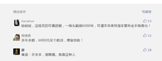 选号本来是一件开心事!可最近珠海一名宝马女车主在车管所给新车选号时,围观男子动手点了一下屏幕,竟引来警察到场,还要赔女司机6000元!网友的评论亮了:本年度珠海车管所金手指