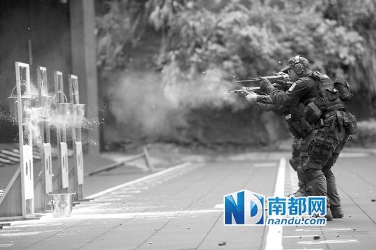为提升处置暴恐事件能力,本月5日和6日深圳市公安局在战训基地举行应用实战比武训练。10个分局的机动训练大队特警中队民警先后进行单警近距长短枪快射和九孔掩体板长短枪实战应用射击比武。特警支队教官进行了单警近距长短枪快射、多目标快射、最小作战单元及小组实战应用射击展示。此前,市公安局机训办组织各分局机训大队特警中队开展了为期1个月的实战应用射击培训,主要培训枪械使用和战术运用。