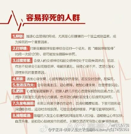 广州军区广州总医院心内科博士顾晓龙介绍,那些出事的都是有潜在危险的不健康人,喝酒、运动、情绪激动等只是个导火索,让平时潜在的炸弹爆炸而已。所以,并不是运动导致心脏病,而是运动导致发作。平时有胸闷胸痛、心律失常、或有冠心病危险因素比如糖尿病、高血压、高血脂、早发冠心病家族史、抽烟、男性>50岁、女性>60岁这些危险因素的人,要每年进行抽血化验和运动平板等相关检查,在专科医生的建议下进行运动。