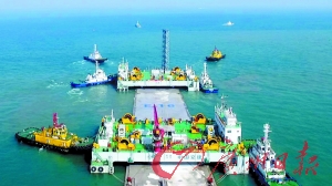 经过数十小时拖运、系泊作业、沉放准备以及数次沉放调整和数据监控,E16沉管浮运安装成功。