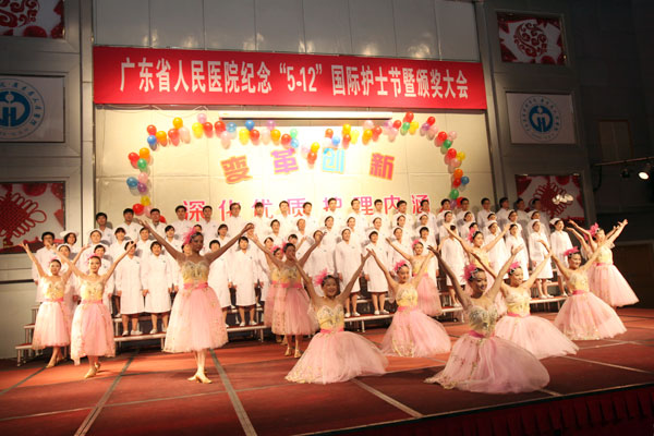 大会开始一改以往风格,首先在屏幕上展示了我院护士风采照片及有关男护士、空中急救护理视频,生动地再现了护士们心系群众健康的情怀,讴歌了她(他)们爱岗敬业、奉献社会的时代形象。