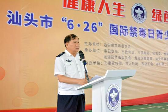 曾湘澜同志发表了讲话,肯定了我市毒情形势出现“四减少两上升”的积极变化:制毒犯罪明显减少,外地毒品指向明显减少,涉毒人员参与其他类型犯罪明显减少,18岁以下吸毒人员增幅明显减少;刑拘和逮捕涉毒犯罪嫌疑人同比上升。同时强调,禁毒工作仍然任重道远,需要各级各部门齐抓共管、社会各界广泛参与。他号召大家携起手来,共筑禁毒长城,为青少年创建一个“健康人生,绿色无毒”的社会环境,为把汕头打造成为活力特区、和美侨乡、粤东明珠作出新的更大贡献!