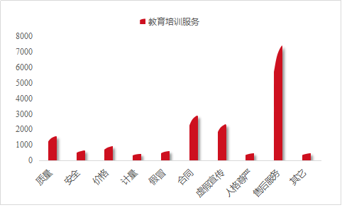 2019年,全省消委会系统共处理教育培训服务投诉17611件,占总投诉量的4.71%,同比增长71.21%。从投诉数据来看,该类投诉主要集中在售后服务(7399件)、合同(2892件)、虚假宣传(2322件)三大问题,三者合共12613件,占教育培训服务投诉的71.62%(图7)。从具体投诉来看,消费者反映的问题主要有培训机构和老师资质不健全、教学质量欠佳、虚假宣传、设置霸王条款、诱导办理培训贷等。其中因培训贷而引发的消费纠纷近几年屡屡发生,成为教育培训服务投诉中的热点问题。由于培训贷能满足一些资金紧张的学生提升能力的需求,颇能吸引学生,因而被教育培训机构广泛应用,但其实际是一种目的性很强的营销手段。培训机构在宣传时,往往把课程描述得十分美好,而有意淡化贷款的压力,甚至偷换概念,美其名曰分期付款,掩盖其消费贷款的实质。学生往往怀着对学习知识的美好愿景,草率签订培训合同和贷款合同,而忽略了其背后的“陷阱”。后期因培训存在问题想要退款时,一方面面临高额的违约金,另一方面即便成功解约,也仍被贷款公司要求继续偿还贷款,承担高额利息。