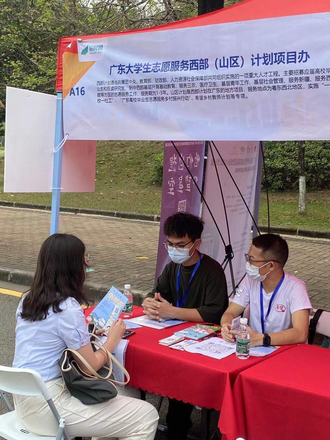 广东大学生志愿服务西部(山区)计划招募展位除此之外,招聘会还设置西部计划、山区计划等大学生基层志愿服务招募专区、职业发展咨询专区等多个功能区。职业导师来到现场,一对一为求职学生提供就业指导服务。