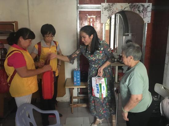 捐赠仪式现场,爱心企业为10户困难家庭代表送上捐赠物资,并分组走访3户困难家庭,送上爱心物资,其它物资将联合各家庭综合服务中心进行派送,由广州义工联专才义工队伍协助派送。