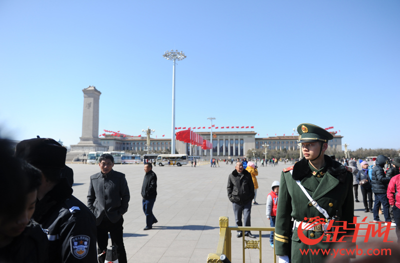 金羊网3月3日北京电 羊城晚报两会全媒体记者谷正中、周聪报道:还有一个多小时,全国政协第十二届三会议将在人民大会堂召开,金羊网记者在大会幕前来到了天安门广场,拍下了会前现场。进入现场需要安检,整个外围秩序井然。