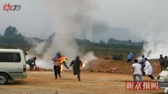 广东征地纠纷:村民泼汽油烧伤4名政府工作人员