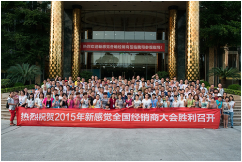 7月7日,新感觉2015年全国经销商年会暨二十周年庆典在顺德均安骏景酒店隆重举行。来自广西、广东、福建、河南等省份的150多名优秀经销商与新感觉公司领导、销售团队共同拉开了新感觉年会季的帷幕。