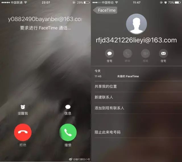 26岁的孙小姐就遇到了类似的情况,从来没有使用过Facetime功能的她,在上周日接到了一个陌生视频电话。“手机正在充电呢,突然就响了起来,是一个来自[email protected]的邀请。和打电话不一样的是,视频邀请响起时,我的前置摄像头同步打开了,一拿起来就能直接在屏幕里看到我当时的样子。”孙小姐说,犹豫了几秒后,她拒绝了该通话。